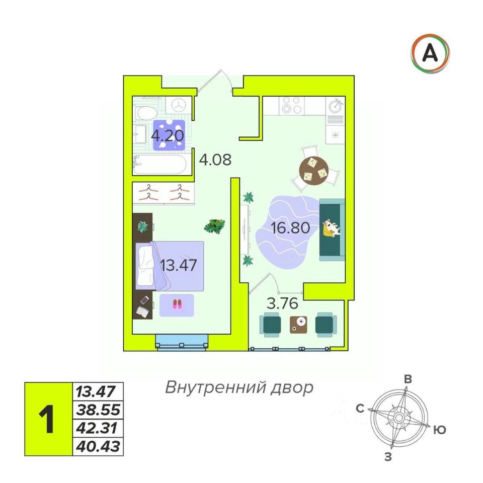 Общая площадь40,43 м²