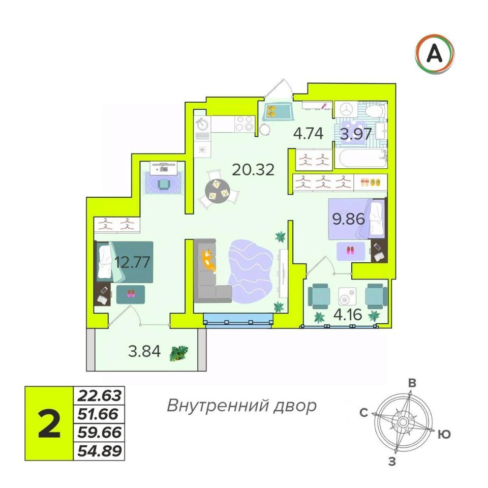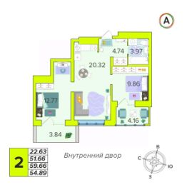 Общая площадь54,89 м²