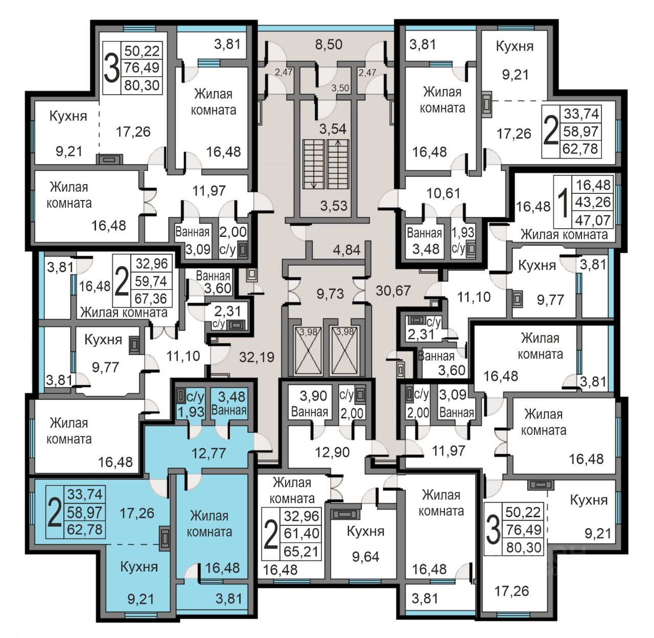 Продаётся 2-комнатная квартира в сданном доме (Минская, 24 (Дом 13)), срок сдачи: II-кв. 2024, общей площадью 62.78 кв.м., на 2 этаже.
