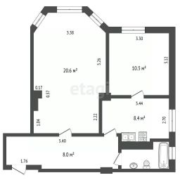 - Зал — 20.6 кв. м