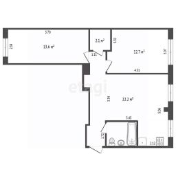 Общая площадь квартиры составляет 58 кв. м.