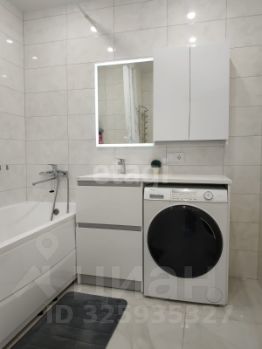 В ванной стиральная машина Наiеr с функцией сушки.