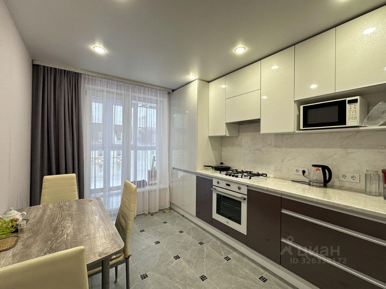 • остаётся кухонный гарнитур, вытяжка, встроенная поверхность и духовой шкаф, шкаф-купе, зеркало и тумба под раковину в ванной, карнизы, шторы.