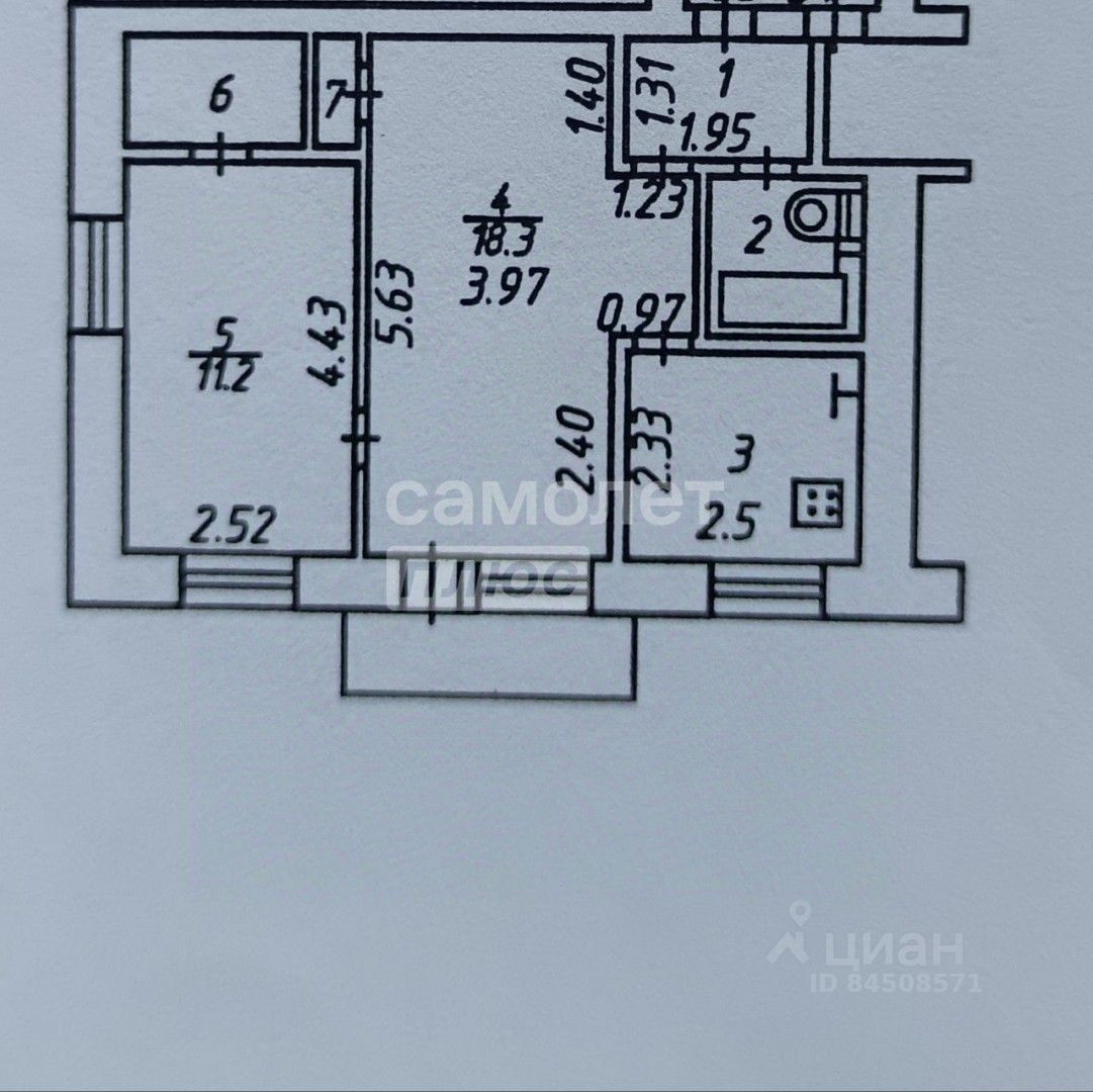 Общая площадь 43.1 кв.м.