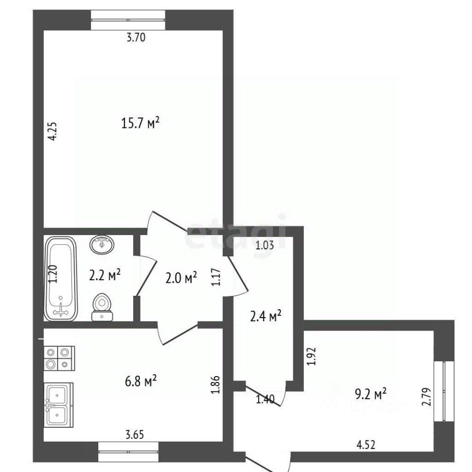 -Общая площадь 38.9 кв.м.