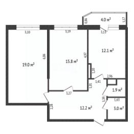 Квартира расположена на комфортном 11-м этаже 20-этажного дома, с прекрасным панорамным видом из окон. Удобная планировка, комнаты 19 и 15,8 кв.м..