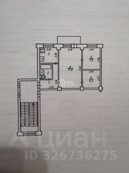 Продается трехкомнатная квартира, 44.5 кв. м. по адресу: Калуга, улица Глаголева, дом 6.