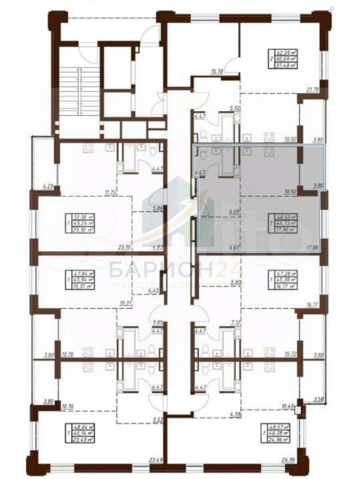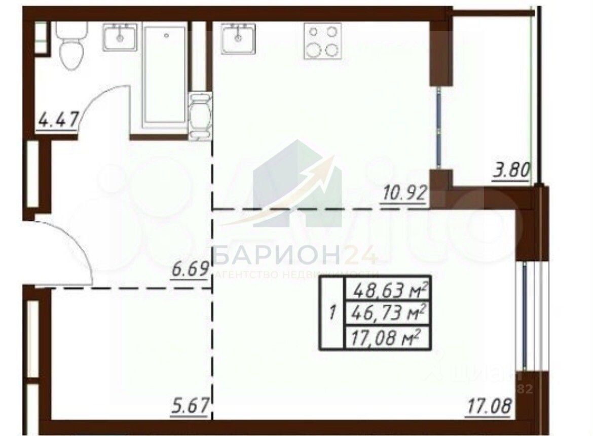 1125100 Предлагаем просторную квартиру площадью 48,6м2, расположенную в элитном ЖК " Пушкин" по улице Белкинская, 36.
