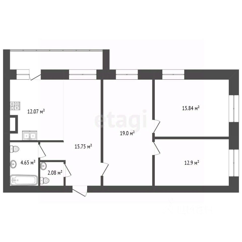 Прекрасная трехкомнатная квартира с БОЛЬШОЙ лоджией. Потолки 2,7 м. Площадь указана без учета лоджии!