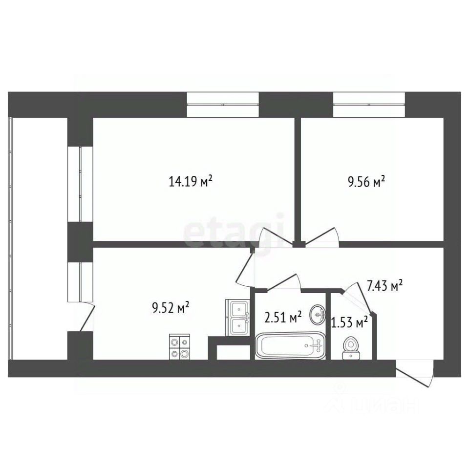 Прекрасная двухкомнатная квартира площадью 46,4 кв.м. с БОЛЬШОЙ лоджией. Потолки 2,7 м. Площадь указана без учета лоджии!