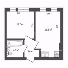 Общая площадь: 35.7 м²