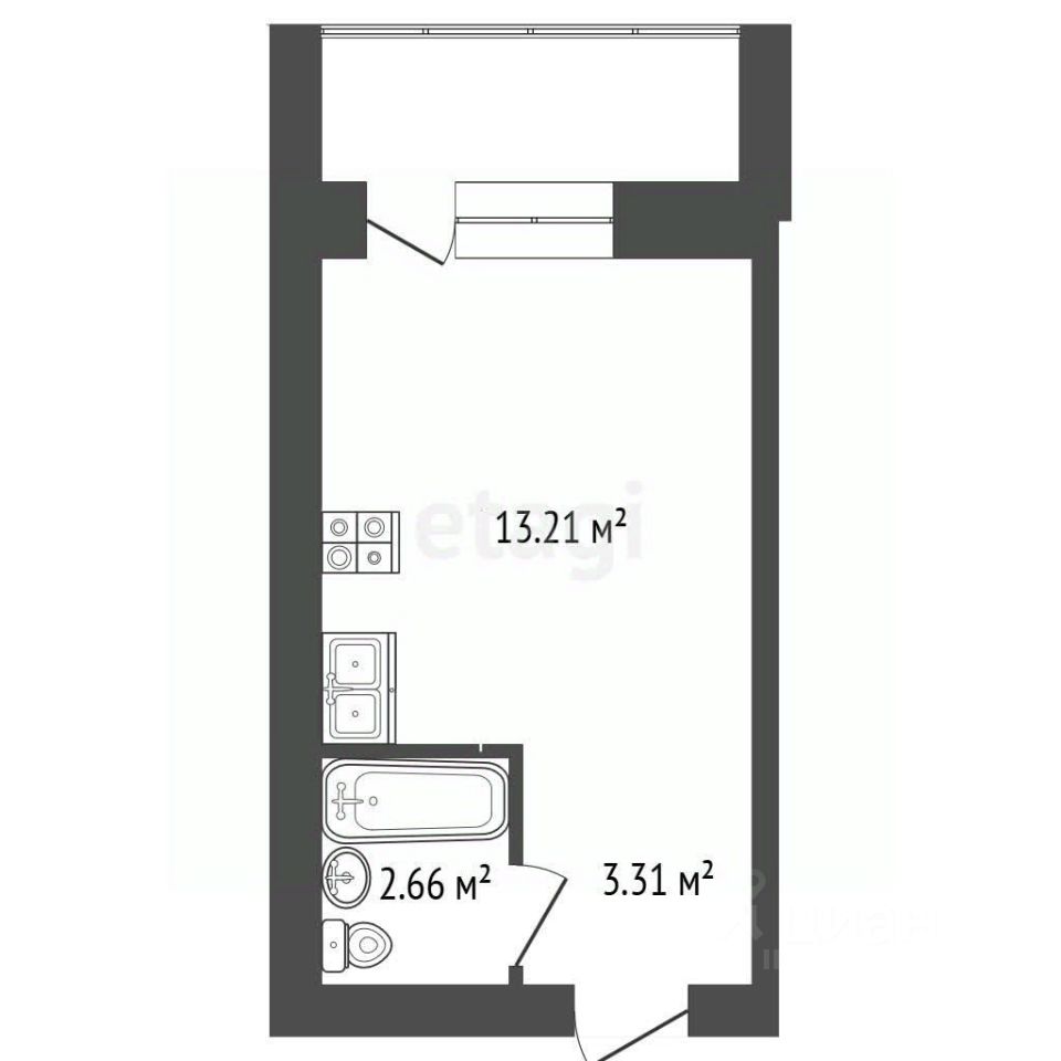 Прекрасная студия площадью 30 кв.м. с БОЛЬШОЙ лоджией. Потолки 2,7 м.