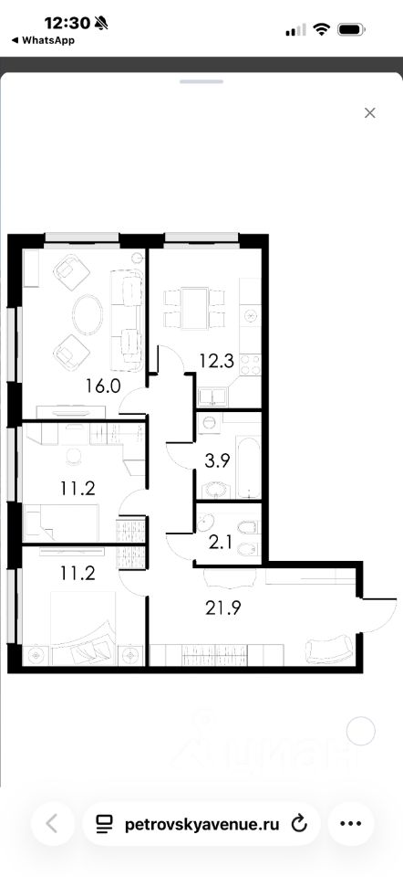 12,3 м²