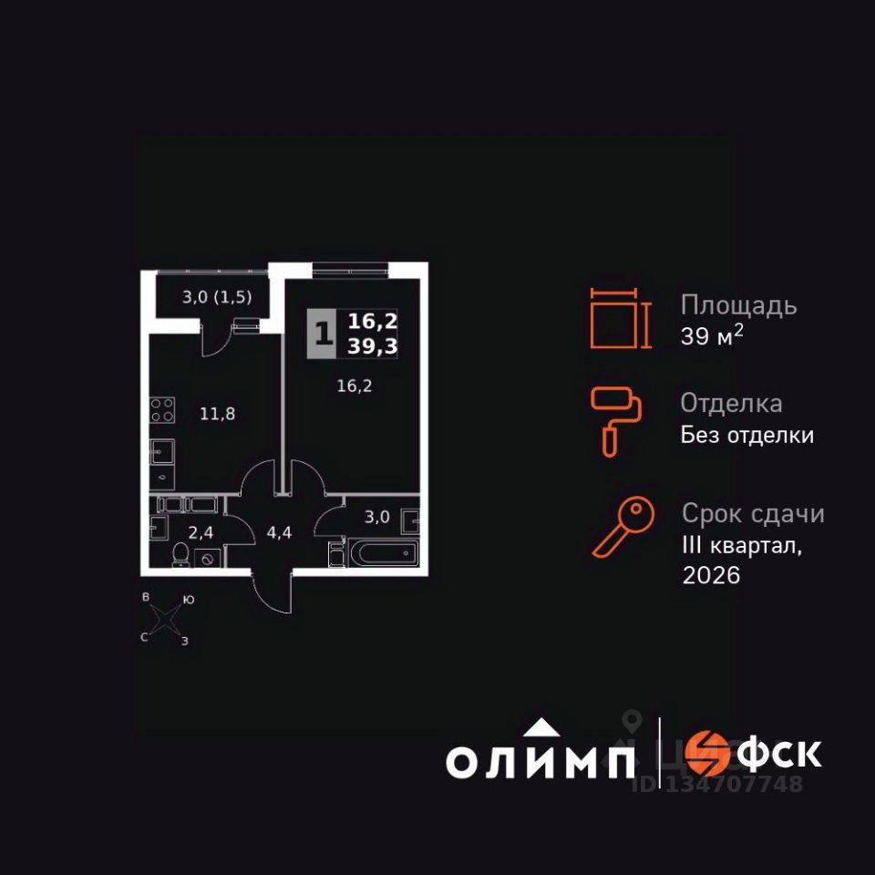 Продаётся 1-к квартира номер 104 общей площадью 39.3 кв.м. на 14-м этаже 24 этажного здания. Без отделки. Цена с учётом скидки.