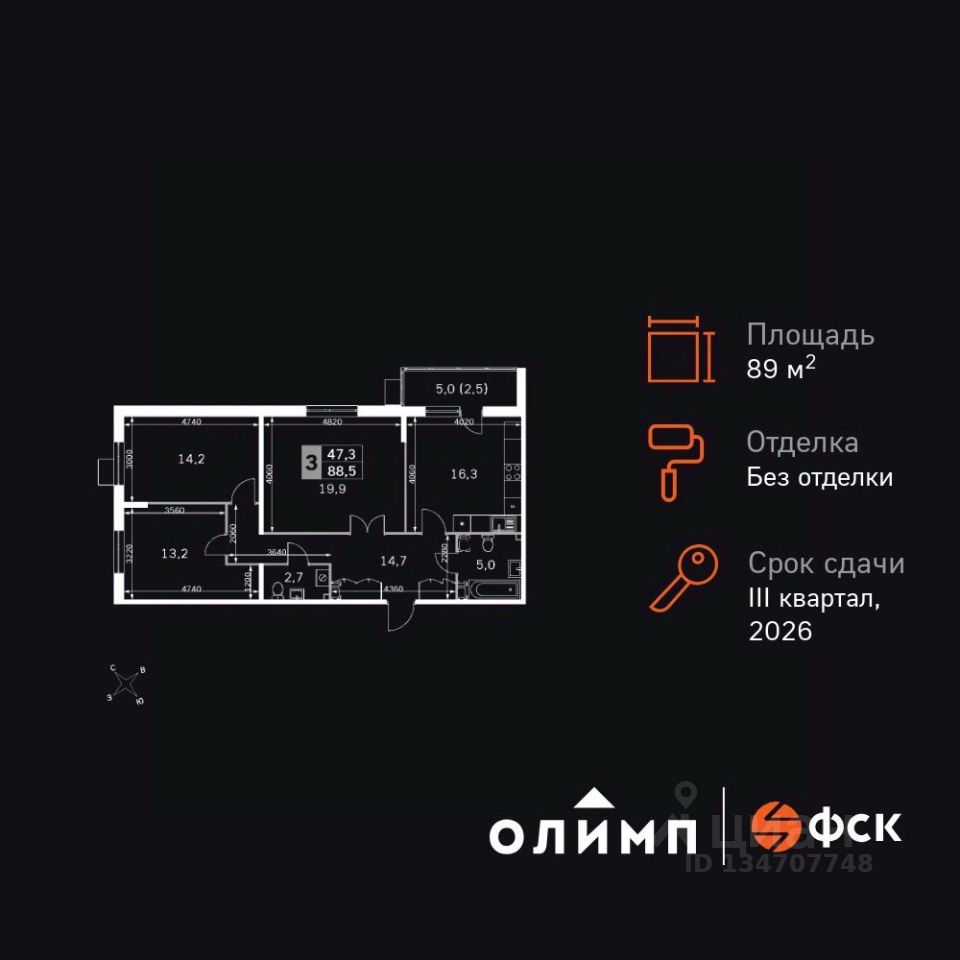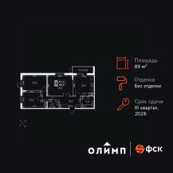 Продаётся 3-к квартира номер 6 общей площадью 89.3 кв.м. на 1-м этаже 22 этажного здания. Без отделки. Цена с учётом скидки.
