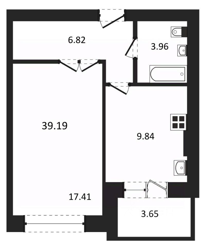 Общая площадь39,19 м²