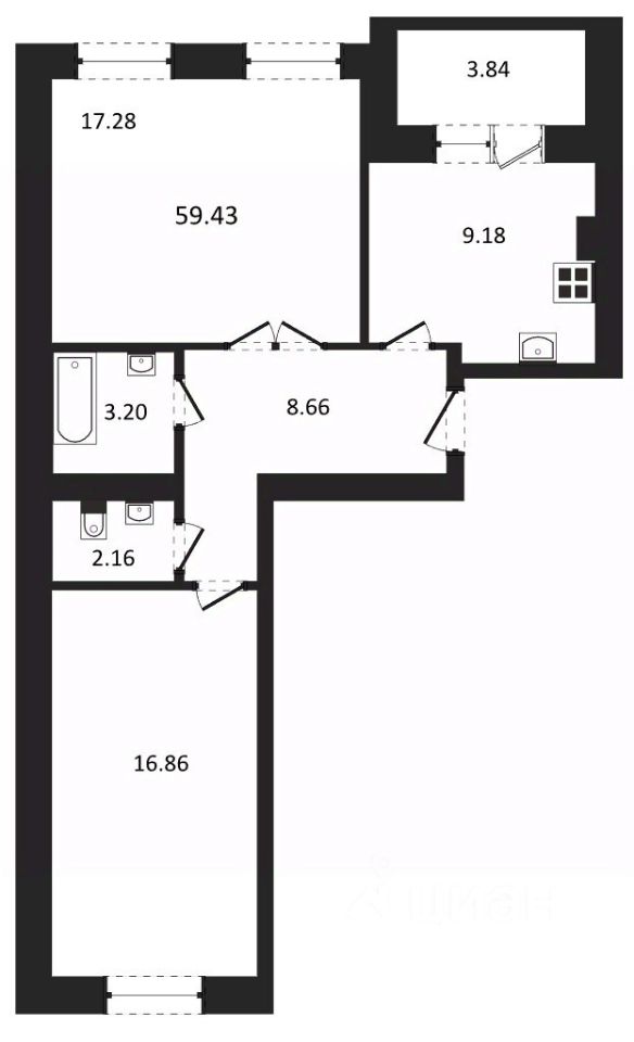 Общая площадь59,43 м²
