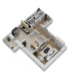 Отделка: стены, полы и потолки без отделки, произведена гидроизоляция полов в санузле, ввод труб водоснабжения и канализации в квартиру (стояки), установка входной двери и счетчиков, остекление оконных блоков и лоджии.