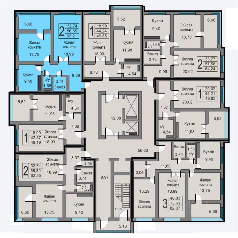 Продаётся 2-комнатная квартира в строящемся доме (Дом 15а), срок сдачи: III-кв. 2026, общей площадью 63.21 кв.м., на 16 этаже.