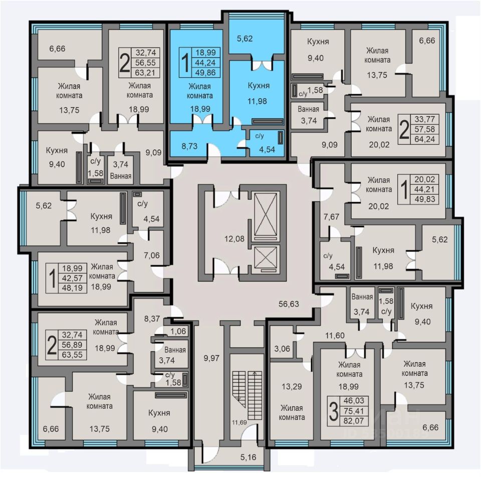 Продаётся 1-комнатная квартира в строящемся доме (Дом 15а), срок сдачи: III-кв. 2026, общей площадью 49.86 кв.м., на 17 этаже.