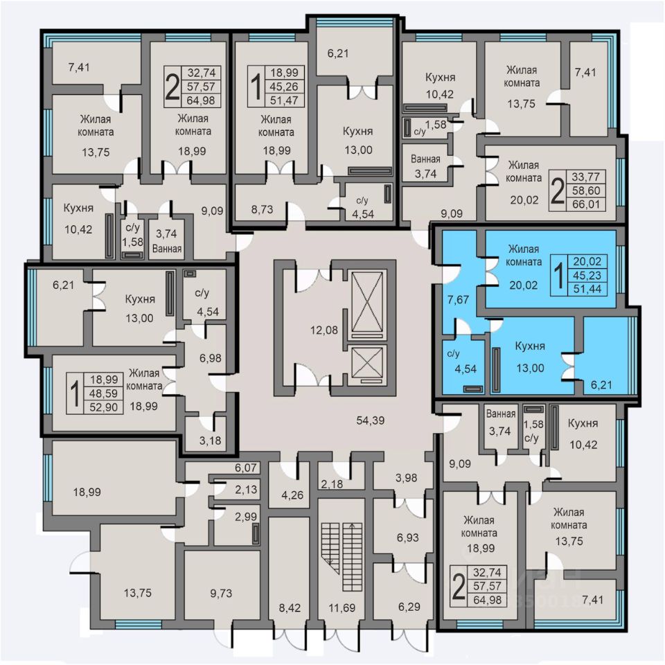 Продаётся 1-комнатная квартира в строящемся доме (Дом 15а), срок сдачи: III-кв. 2026, общей площадью 51.44 кв.м., на 1 этаже.