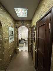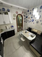 Кухня просторная , 11 квадратных метров, оборудована техникой, включая холодильник и стиральную машину. В квартире есть раздельный санузел, оформленный в светлых тонах. Лоджия застеклена, что позволяет использовать ее как дополнительное пространство для хранения или отдыха.