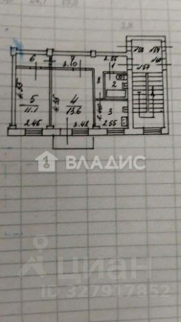 Квартира расположена на 5 этаже пятиэтажного панельного дома 1966 года постройки. Общая площадь составляет 44,5 кв. м, из которых 24,6 кв. м — жилая площадь. Две изолированные комнаты (13,6 кв. м и 11 кв. м) и кухня площадью 6,1 кв. м предоставляют достаточно пространства для комфортного проживания. Высота потолков — 2,6 м, что создаёт ощущение простора.