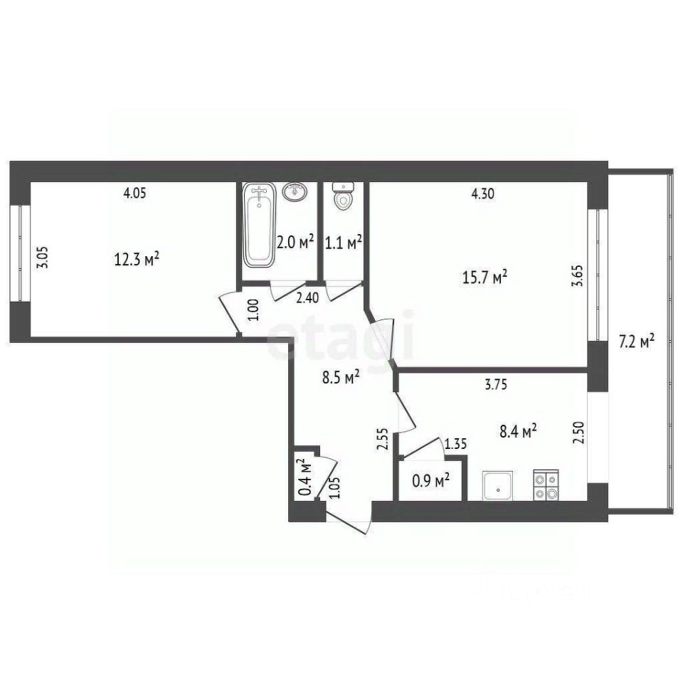 Балкон: 7,2 кв.м.