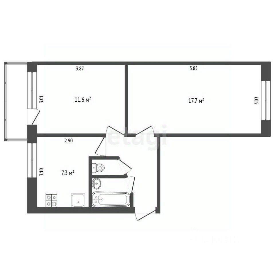 комнаты 17,7 и 11,6 кВ м