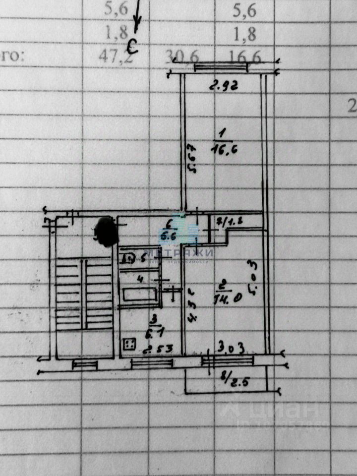 Общая площадь квартиры 47,2 кв.м.