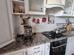 Ремонт в квартире качественный. В комнатах на полу ламинат, в остальных помещениях плитка. Стены в дорогих обоях. Потолки подвесные, с элементами декора, очень элегантные, не утяжеляют пространство. По всей квартире красивые, дорогие люстры.