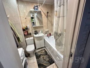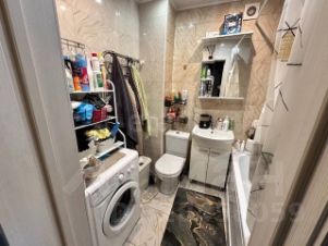 Санузел совмещенный, оформлен плиткой под мрамор, оснащён ванной и современной сантехникой. Из окон открывается приятный вид на город. На балконе можно обустроить зону отдыха или хранить вещи.
