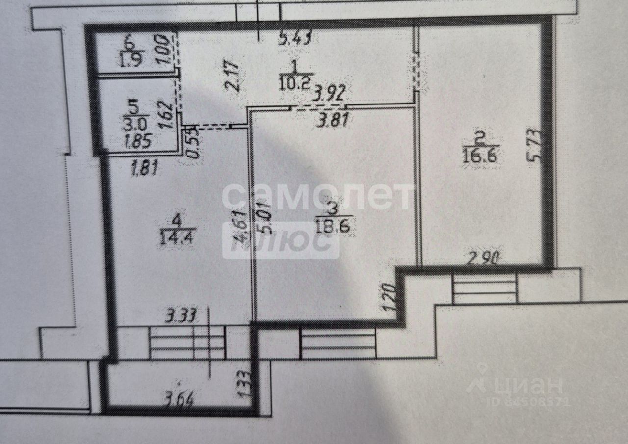 Общей площадью 64,7 кв.м. + лоджия 5м2.