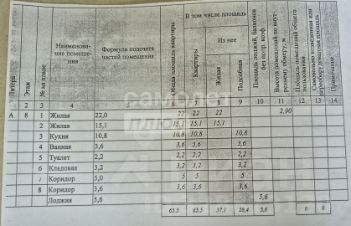 Общей площадью 65,5 кв.м. + лоджия 5,6 м2.