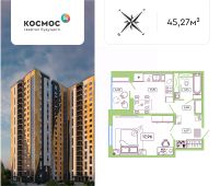 Продается1-комнатная квартира, 43,1 м²в ЖК Космос 2.0, по адресу: г. Обнинск, район Заовражье, Табулевича 1 п.1.