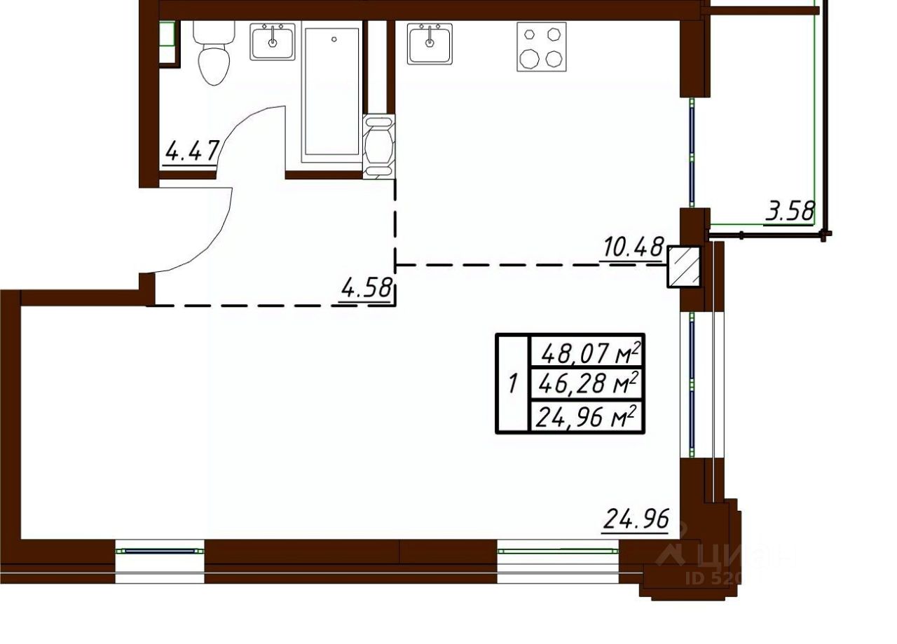 Общая площадь48,07 м²