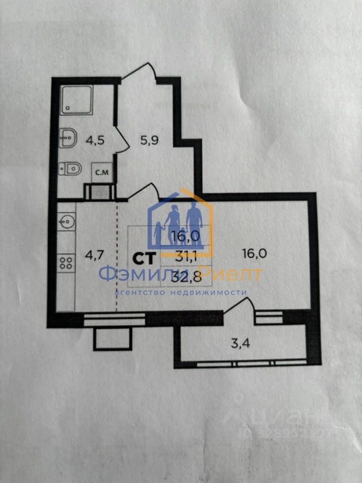 Просторная студия: Общая площадь составляет 32,8 м², что позволяет комфортно разместить зону отдыха, рабочую область и кухню. Пространство идеально подходит для реализации ваших дизайнерских идей.