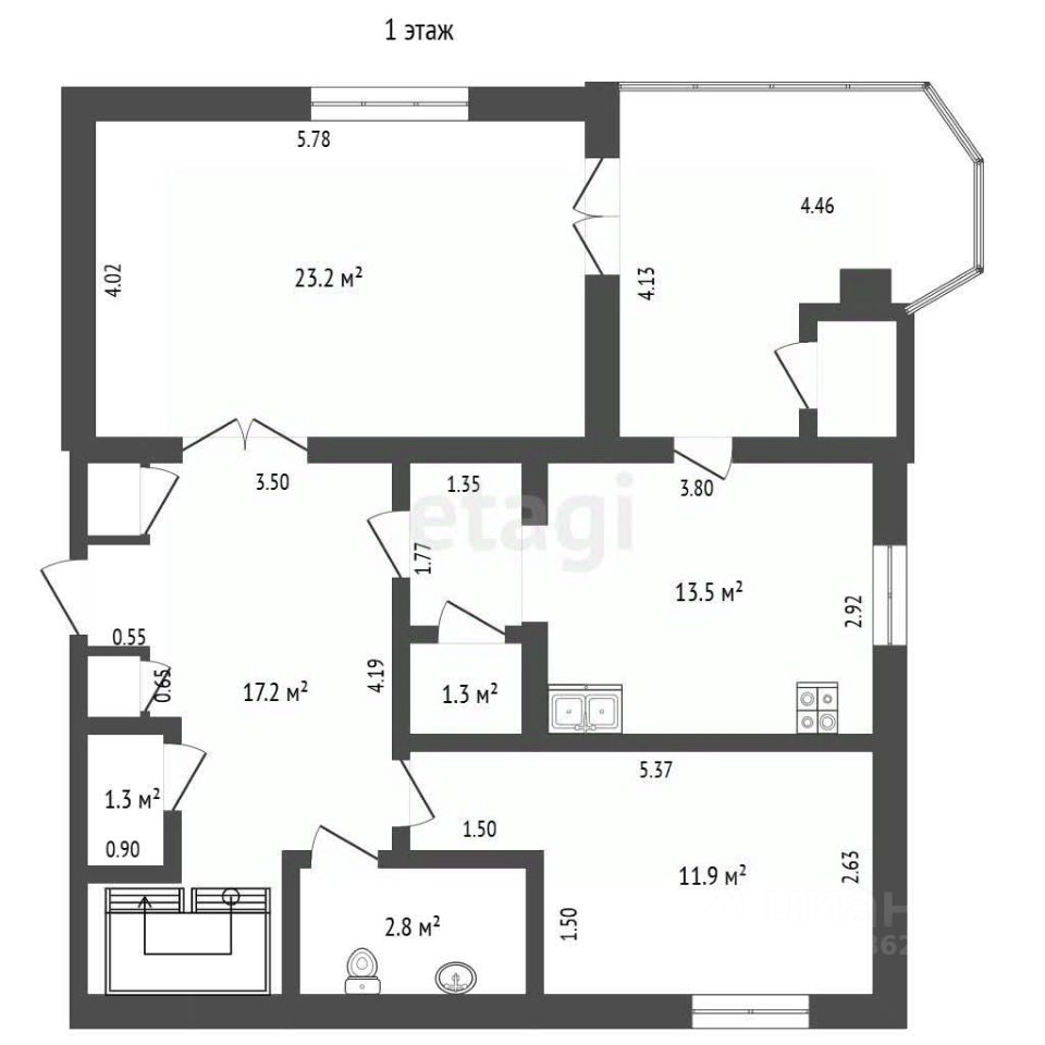 Общая площадь: Просторные метры, идеальные для семьи или комфортного проживания