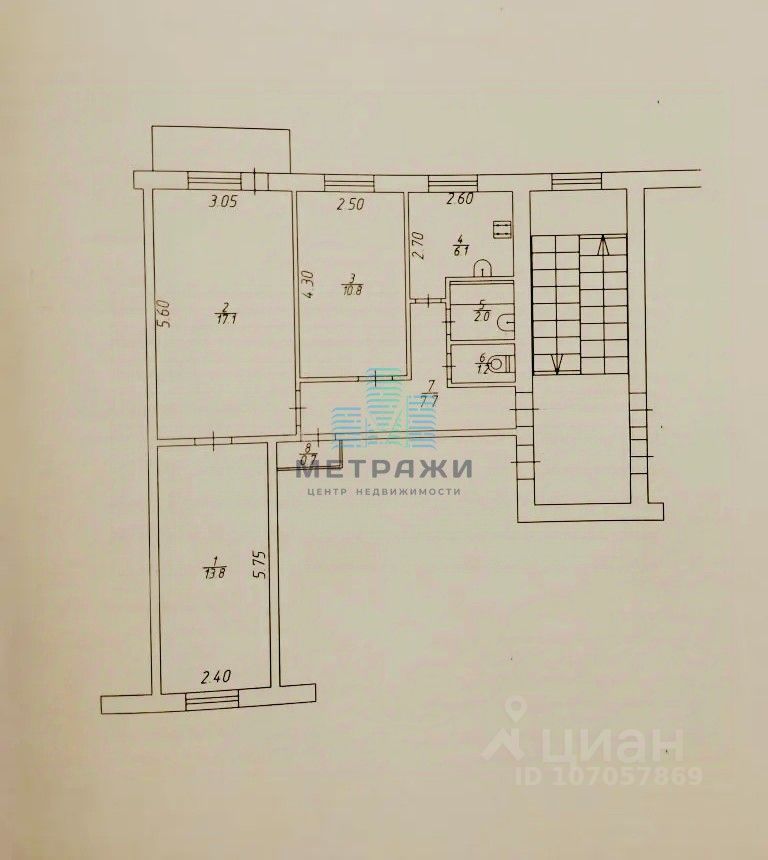 -Общая площадь: 59,8 кв. м.