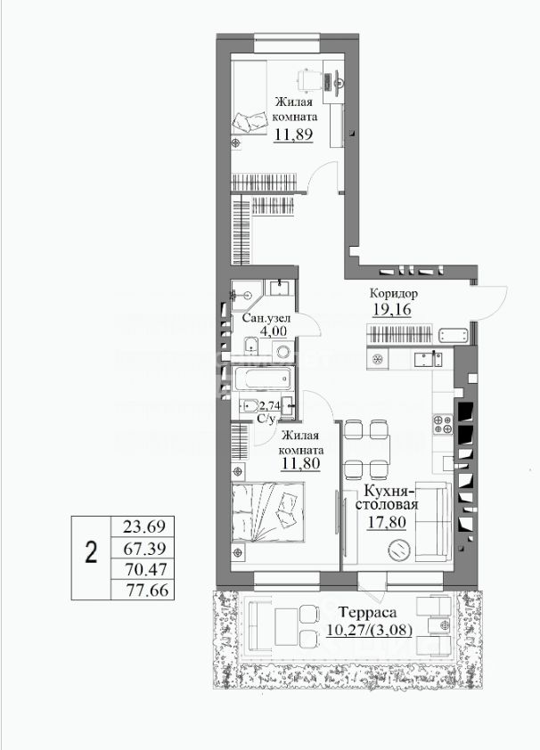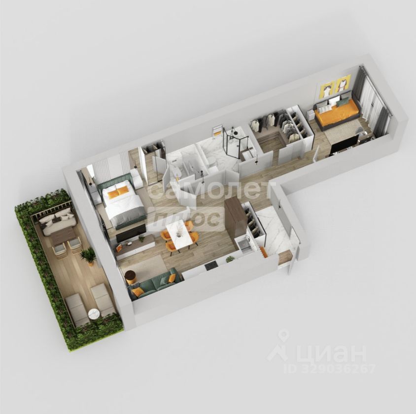 Квартира имеет уникальную террасу площадью 10 м с отдельным входом в квартиру.