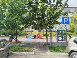 Двор тихий, просторный, зелёный и ухоженный, есть большая детская площадка