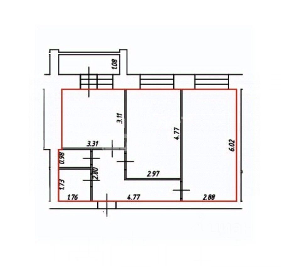 Площадь квартиры 58,7 кв.м., раздельный сан. узел, две изолированные комнаты, лоджия из кухни.