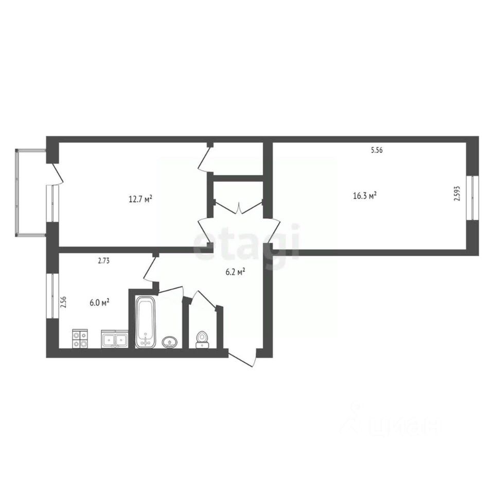 В квартире выполнен хороший косметический ремонт, установлены пластиковые окна, а также частично остаётся мебель и бытовая техника. Кухня имеет площадь 6 м², а комнаты — 12,7 и 16,3 м². Также имеется кладовая .