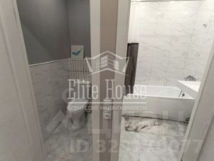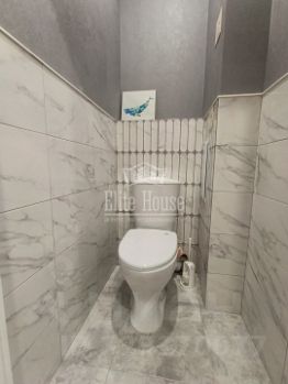 Санузел полностью в кафельной плитке. Под раковиной имеется место и выводы для стиральной машинки.