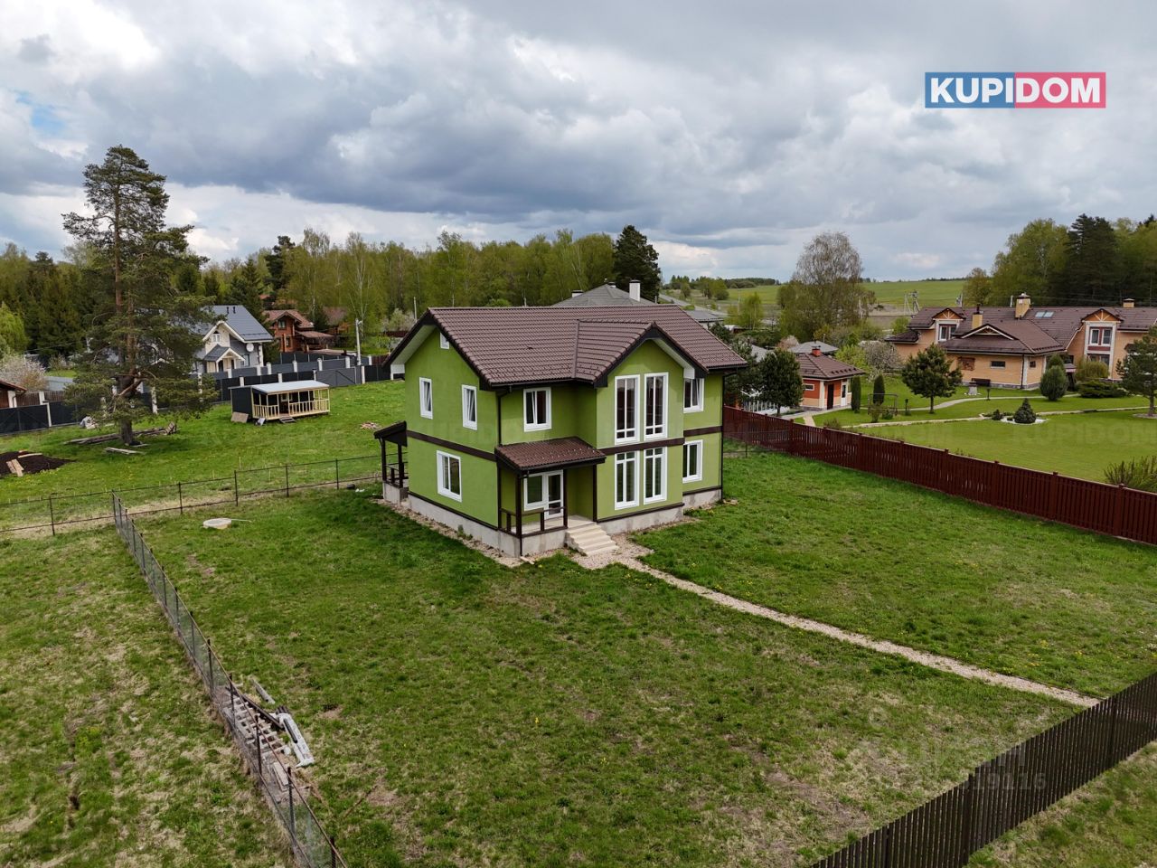 12 соток. Огорожен забором металлический штакетник/рабица; Установлены въездные распашные ворота. Рядом с поселком протекает река.