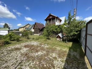 УЧАСТОК: 8,5 соток, по периметру участка установлен новый металлический забор коричневого цвета (профнастил), два заезда под машины, в каждом поместится 2-3 автомобиля, 1-ый заезд уложен бетонными плитами (ровные), 2-ой - гравием (уложен плотно, ровно), на участке имеются новые зеленые насаждения, ухожен, чистый, периодически косится, водоснабжение центральное (водокачка на территории СНТ) На участке сложены металлические конструкции от предыдущего забора, которые в ближайшее время будет сдан в металлом. На участке также расположен старый 2-х этажный дом от предыдущих хозяев, стоит на плитно-ленточном фундаменте, 3 жилые комнаты, печное отопление.