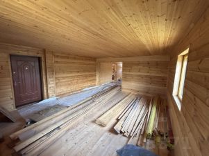 БАНЯ: фундамент плитно-ленточный, строганное бревно, крыша металлочерепица, при строительстве обрабатывалась огнебиозащитой, не достроена, при этом в доме имеется весь необходимый материал для ее отделки (см.фото).