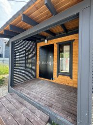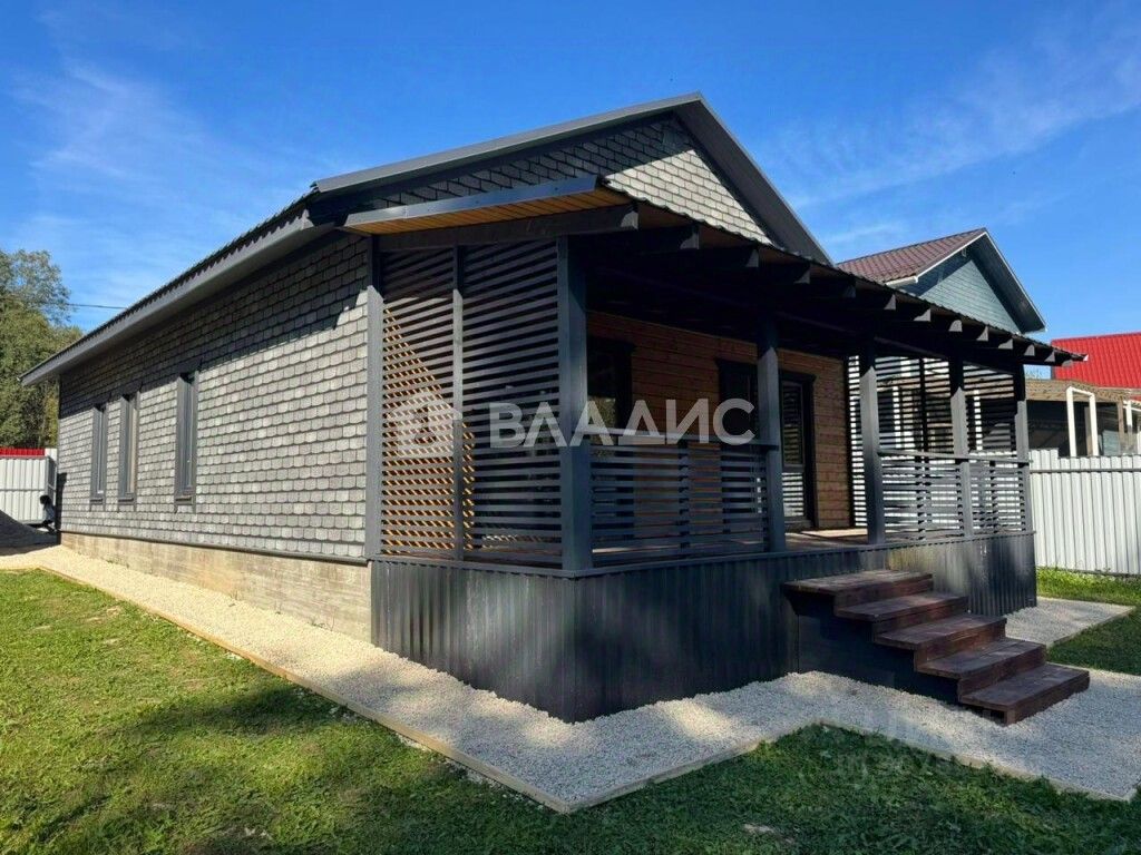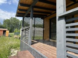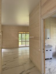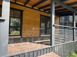 Жилой одноэтажный дом, фундамент - монолитная плита, крыша металлочерепица, окна двойные стеклопакеты поворотно-откидные. Внутри отделка: пол комбинированный (плитка/ламинат), стены (внутри) - имитация бруса, снаружи фасадная плитка Хауберк, потолок натяжной. Планировка: прихожая, бойлерная(где будет установлен дополнительный туалет), кухня-гостиная с выходом на террасу- откуда прекрасный вид на лес, санузел, 3 спальни (одну можно переделать под гардеробную)