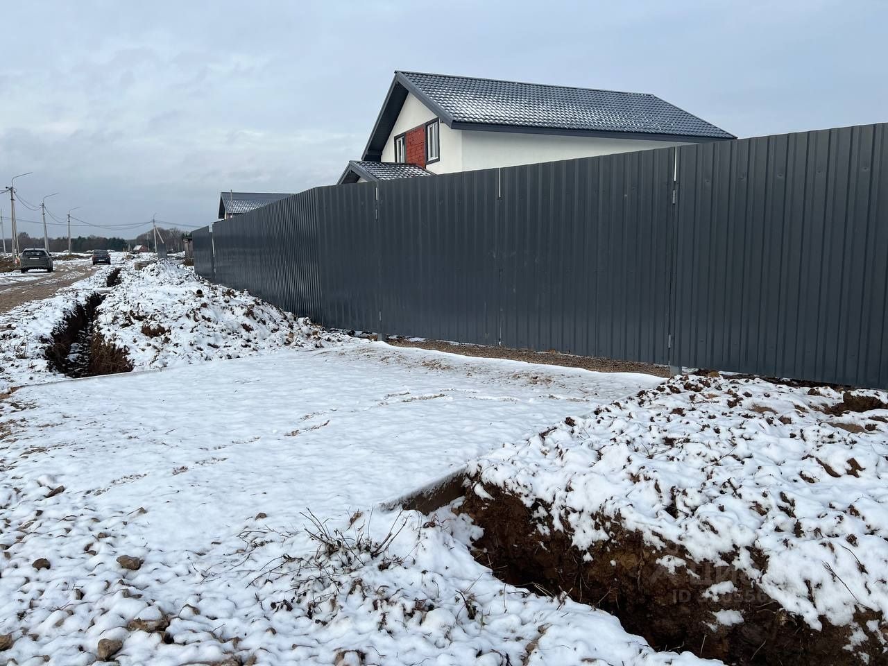 Забор по периметру сетка рабица, лицевая сторона проф настил 1,8 м, ворота, калитка.