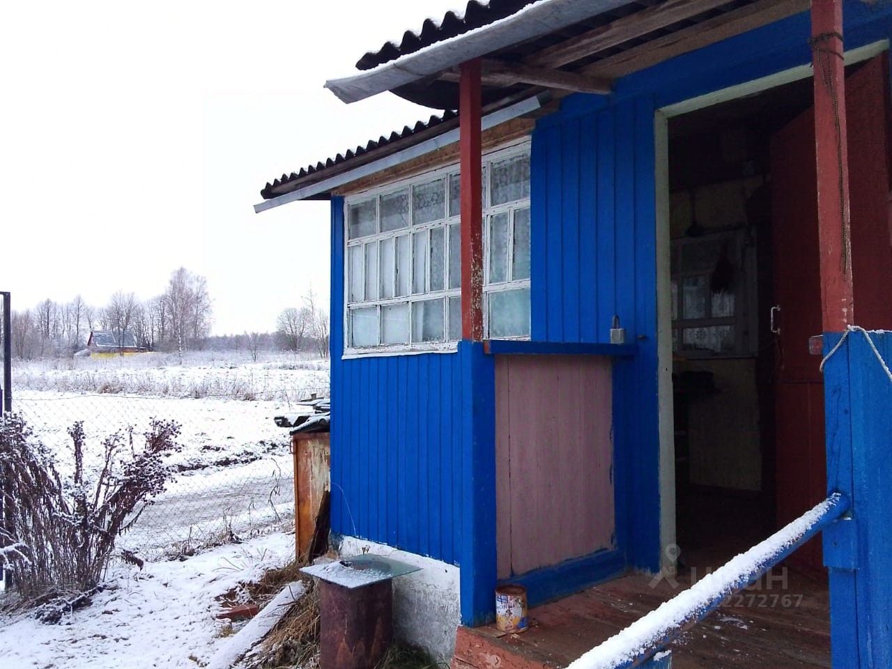 Дом крепкий из бревен в жилом состоянии с шиферной крышей, с весны по осень проживают. Имеется одна комната , кухня с действующей печкой, терраса крытая, хозблок с новой железной крышей, глубокий погреб (в полный рост). Колодец на улице в 50 м.